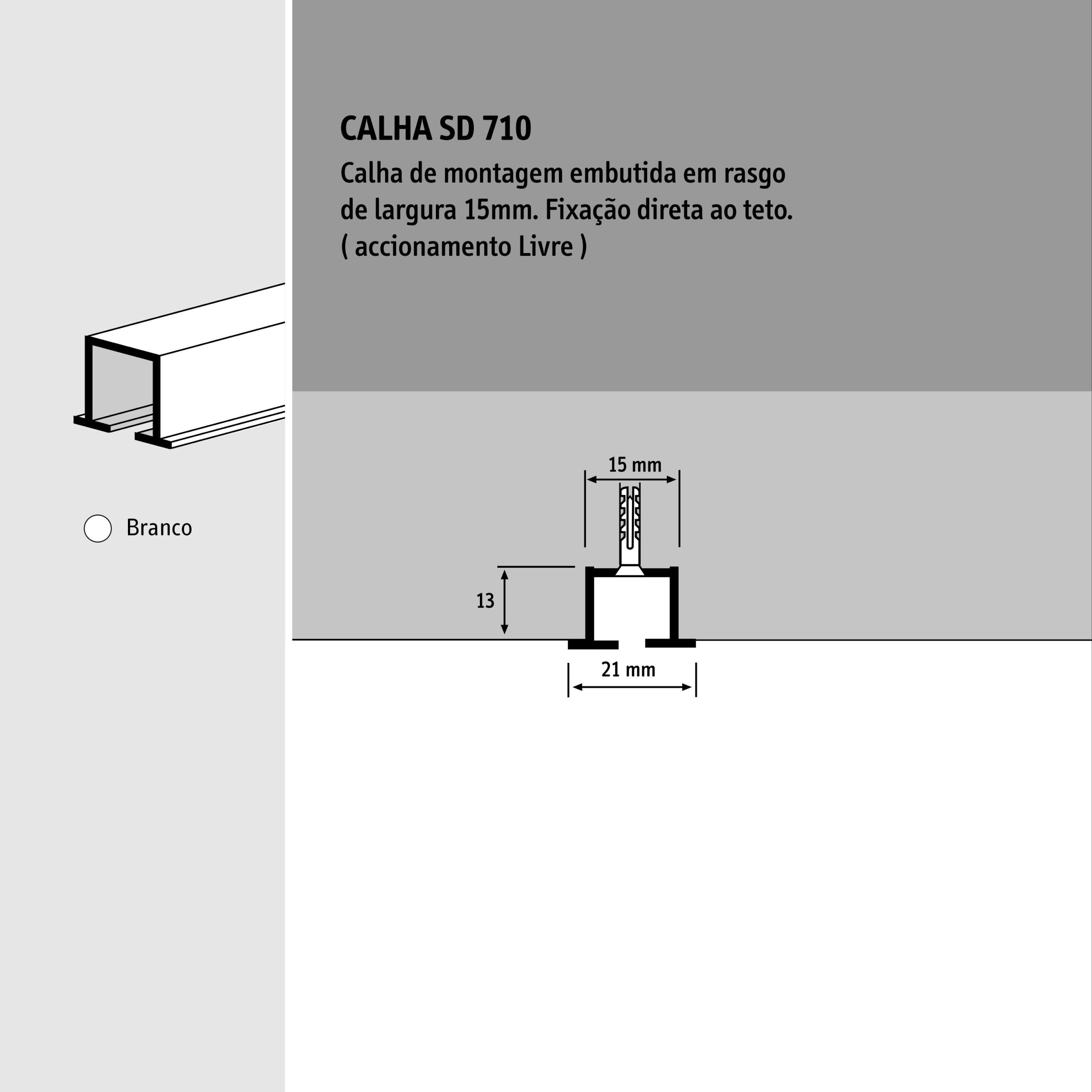 A calha embutida de cortinas SD710 foi concebida para cortinas leves, garantindo fluidez no movimento.