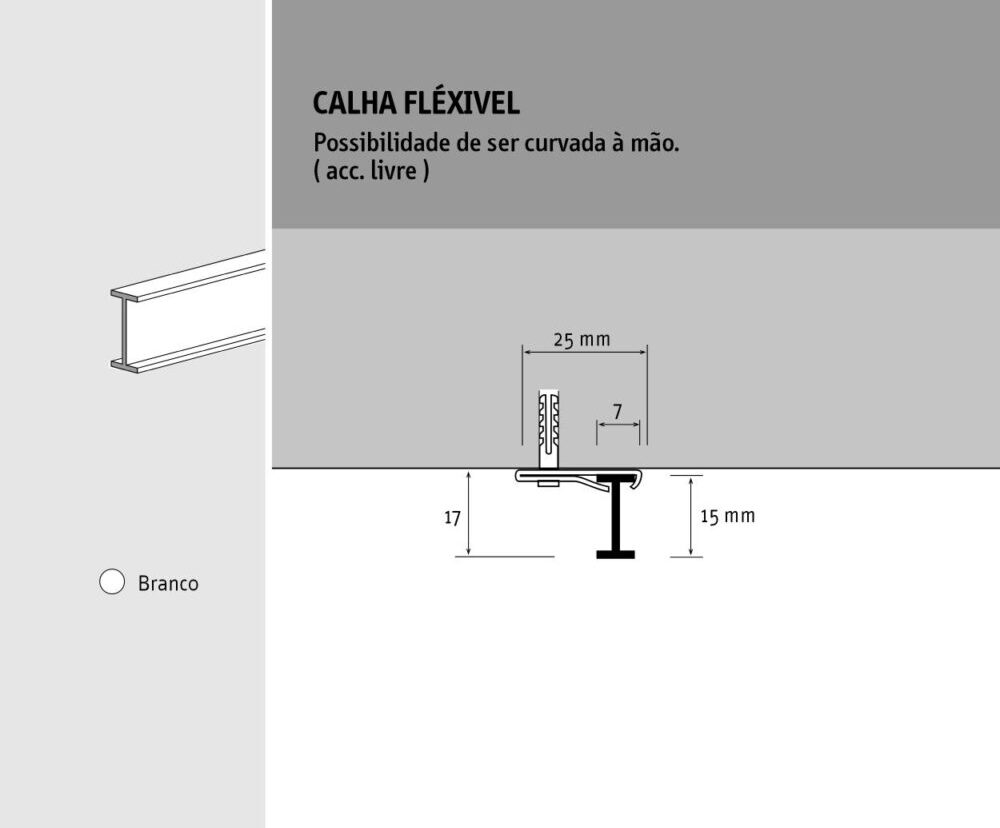 Concebida para cortinas leves, diferencia-se pela sua capacidade de ser curvável manualmente, dispensando qualquer ferramenta especial.